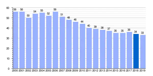 | Gráfica de evolución demográfica de Palacio de Valdellorma[2] entre 2000 y 2019 |