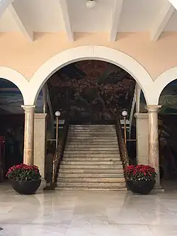 El Palacio de Gobierno de Sonora tiene una serie de murales, tanto en los muros que enclaustran al patio en planta alta y baja, como en la envolvente de las escaleras.