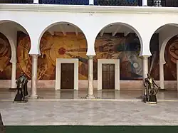 5. Para toda la sección: Sánchez, Carlos (10 de agosto de 2016). «Murales del palacio de gobierno, parte fundamental de nuestra historia». Archivado desde el original el 7 de febrero de 2017. Consultado el 7 de febrero de 2017.