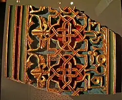 Para recordar el aspecto del palacio a fines del siglo XI hay que imaginarse que todos los relieves vegetales, geométricos y epigráficos estaban policromados en tonos en los que predominaba el rojo y el azul para los fondos y el dorado para los relieves, que, junto con los zócalos en alabastro con decoración epigráfica y las solerías de mármol blanco, daba al conjunto un aspecto de gran magnificencia.