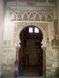 - ↑ Bernabé Cabañero Subiza, C. Lasa Gracia y J. L. Mateo Lázaro, «La Aljafería de Zaragoza como imitación y culminación del esquema arquitectónico y decorativo de la mezquita aljama de Córdoba», Artigrama, n.º 21, 2006, pág. 275. Apud. María Pilar Biel Ibáñez, «Nuevas noticias sobre el palacio de la Aljafería», en Guillermo Fatás (dir.), Guía histórico-artística de Zaragoza, 4.ª ed. revisada y ampliada, Ayto. de Zaragoza, 2008, pág. 717. ISBN 978-84-7820-948-4.