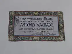 El literato Antonio Machado Álvarez y su esposa, Ana Ruiz, padres de Manuel Machado, se mudaron de la calle San Pedro Mártir, número 20, a una casa de la planta baja del Palacio de las Dueñas en 1875. Aquí nació Antonio Machado el 26 de julio. Hay multitud de referencias en su obra a este palacio.[20][57]