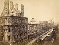 Durante mayo de 1871, el palacio de las Tullerías fue uno de los varios edificios oficiales incendiados por los miembros de la Comuna de París.[1]​ El nuevo régimen republicano decidió su demolición definitiva en 1883.