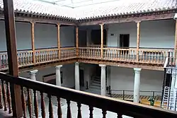 Se trata de un edificio renacentista de bellas proporciones y de planta cuadrada. Consta de semisótano, dos plantas y dos torreones en los extremos de la fachada principal que rompen su carácter horizontal. La organización de la fachada, aunque en conjunto es simétrica, no lo es en detalle, pues la portada está bajo uno de los torreones laterales. Los vanos se reparten de manera clara y ordenada: tres balcones en la parte superior y bajo ellas, dos pequeñas ventanas enrejadas y la puerta principal y una ventana en cada torreón; en la fachada lateral se sigue el mismo ritmo de ventanas. La decoración de la fachada principal se reduce a sencillas molduras en los huecos y escudos, rematando las ventanas de la segunda planta. Interiormente posee un patio central en torno al cual se disponen las distintas dependencias. Es cuadrado con dos alas cerradas y otras dos abiertas arquitrabadas y con columnas dóricas. Del patio arranca la escalera claustral y a él se accede por un amplio zaguán con las puertas de acceso descentradas.[1]