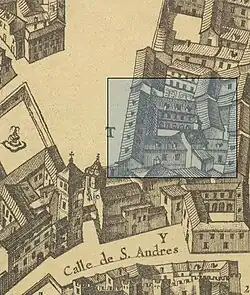 Según se intuye de otros dibujos y pinturas del siglo XIX, periodo en el cual se llevaron a cabo numerosas remodelaciones, el palacio constaba entonces de un solo volumen, de los cuatro reflejados por Teixeira. En el cuadro La costanilla de San Andrés (1840), de José María Avrial, puede verse una única estructura de planta rectangular, con cubiertas abuhardilladas a dos aguas y una sencilla fachada, abierta por varios vanos, que conferían al conjunto una marcada horizontalidad.