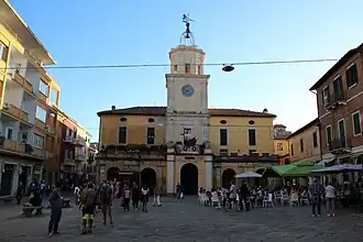 El palacio data del siglo XVII y se construyó en el emplazamiento de una estructura anterior para albergar la sede del gobierno del Estado de los Presidios.[1] El edificio de planta rectangular y de alturas, presenta un frente con un pórtico de cinco arcos y un campanario central en torre con reloj. Sobre el pórtico de entrada, edificado en el siglo XIX, está situado un busto de Giuseppe Garibaldi, obra del escultor Ettore Ferrari. El arco central del pórtico no se reabrió hasta 2015, lo que obligó a retirar la placa en memoria de Giuseppe Mazzini ahí situada, que se trasladó a la fachada del palazzo comunale (ayuntamiento).[2]