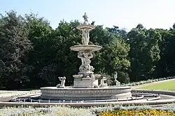 Los jardines responden a un diseño de clara influencia italiana. Se extienden al pie de la fachada meridional del palacio y se distribuyen en dos áreas bien diferenciadas, el jardín alto y el jardín bajo, separados por dos galerías.