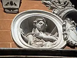 La fachada también presenta arcos de medio punto con sillares almohadillados, los de la puerta principal y varias ventanas, y con mascarones y atlantes en las ventanas superiores. En la reforma del siglo XVIII se añadieron yeserías en la parte superior del edificio. Flanqueando la ventana principal de la esquina se hallan las representaciones de Hermes y una Cariátide. El interior está ocupado actualmente por viviendas privadas y locales.