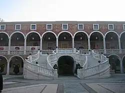 Las habitaciones se diseñaron como una ruta ceremonial que culminara en el Salón del trono; el recorrido comienza por una escalera exterior en forma de herradura que lleva desde el Patio de Honor hasta la Galería de Hércules, una logia con ligeros arcos sustentados por columnas. Desde aquí, los invitados pasan a la Galería de los espejos, una estancia inspirada en la Galería de los Espejos de Versalles.[1]
