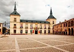 Su fachada de dos pisos flanqueada por dos torres se compone por una serie de balcones con frontones curvos que ordenan el conjunto y la puerta principal con el escudo de los Duques de Medinaceli, protegido por una cornisa. Las cubiertas fueron pensadas como en el palacio de Lerma, la Plaza Mayor y la Casa de la Villa de Madrid para ser realizadas en pizarra. Las torres, eliminadas en el siglo XIX y recuperadas en una restauración posterior, estarían rematadas con chapiteles, adquiriendo mayor altura.