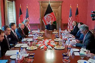 El 15 de agosto de 2021, tras la ofensiva de los talibanes y la toma de la capital, los talibanes ocuparon el Palacio Presidencial después de que el presidente Ashraf Ghani huyera del país.[2][3]
