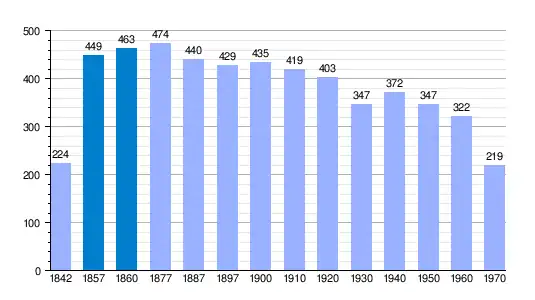| Gráfica de evolución demográfica de Palacios de Benaver[2] entre 1842 y 1970 |