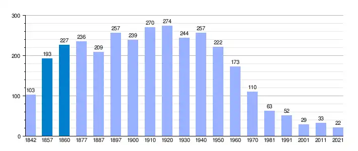 | Gráfica de evolución demográfica de Palacios de Riopisuerga[5] entre 1842 y 2021 |