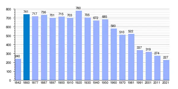 | Gráfica de evolución demográfica de Palacios de Sanabria[12] entre 1842 y 2021 |