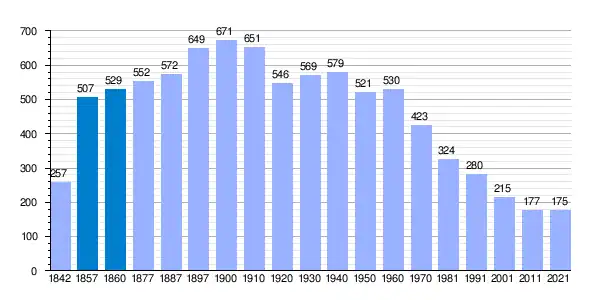 | Gráfica de evolución demográfica de Palacios del Arzobispo[7] entre 1842 y 2021 |