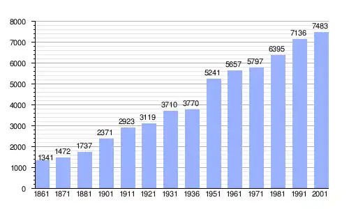 | Gráfica de evolución demográfica de Palagianello entre 1861 y 2001 |