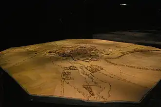 • Aire-sur-la-Lys, Francia, por el ingeniero Nicolas de Nézot, 590 x 467 cm, escala 1/600, 15 tablas, papel, seda y madera (1743)