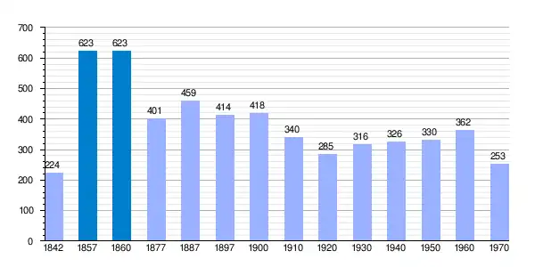 | Gráfica de evolución demográfica de Palau de Noguera[2] entre 1842 y 1970 |