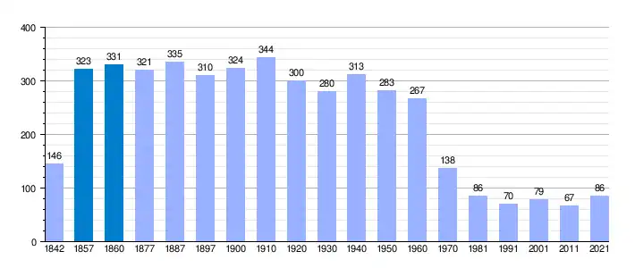 | Gráfica de evolución demográfica de Palazuelos de la Sierra[2] entre 1842 y 2021 |
