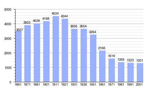 | Gráfica de evolución demográfica de Palazzuolo sul Senio entre 1861 y 2001 |