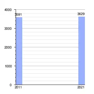 | Gráfica de evolución demográfica de Palhais e Coina entre 2011 y 2021 |