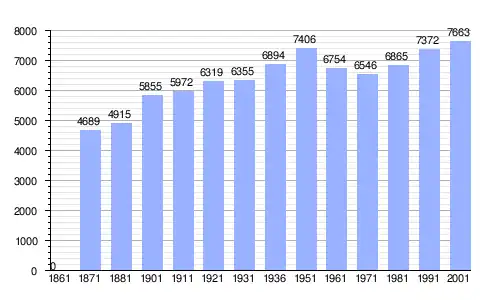 | Gráfica de evolución demográfica de Paliano entre 1861 y 2001 |