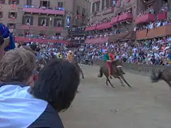- Se corría en Piazza del Campo alla tonda y no por las calles de la ciudad alla lunga (organizado por la nobleza) o en una región específica.
