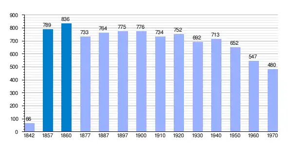 Gráfica de evolución demográfica de Pallargas[3]​ entre 1842 y 1970