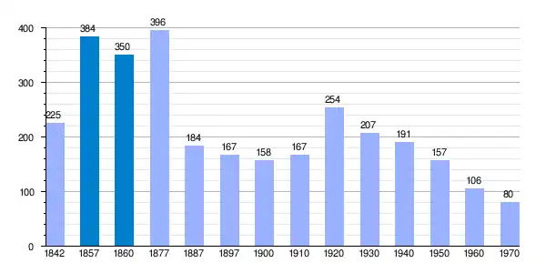 | Gráfica de evolución demográfica de Palleróls[3] entre 1842 y 1970 |