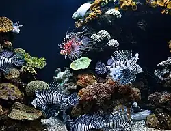 Otros 25 acuarios cuenta con especies de los océanos Índico, Atlántico y Pacífico, entre ellas Pseudanthias squamipinnis (anthias tropical), Labridae (lábrido limpiador), Amphiprioninae (pez payaso), Pterois antennata (pez león), Acanthurus leucosternon (pez cirujano), Ensis (navaja), Syngnathinae (pez pipa), Synchiropus splendidus (pez mandarín), Rhinobatidae (pez ángel), Ostraciidae (pez cofre), Gobio (gobio), viuda negra, tiburones puntas negras, corales vivos (Gorgonacea, Fungia scutaria, Agaricia undata, Porites colonensis), anémonas (alfombra, caribeña, tentáculo de bulbo) y de esponjas tropicales. Cuentan también con un programa de reproducción de corales.