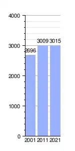 | Gráfica de evolución demográfica de La Palma de Cervelló[3] entre 2001 y 2021 |