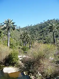- ↑ Quintanilla, Victor; Castillo, Miguel (2009). «Degradacion de Ecosistemas de la palma más Austral del Mundo (Jubaea Chilensis) acelerada por los Fuegos Estivales en los cordones litorales de Valparaíso y Viña del Mar (32'50'-33" 02's). Un caso sostenido de perturbación del paisaje». Investigaciones Geográficas 41.