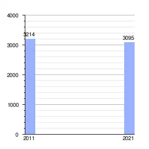 | Gráfica de evolución demográfica de Palmeira de Faro e Curvos entre 2011 y 2021 |