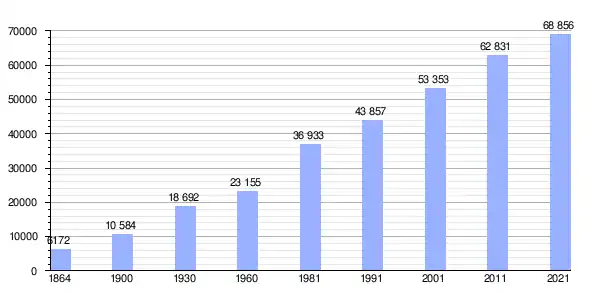 | Gráfica de evolución demográfica de Palmela entre 1864 y 2021 |