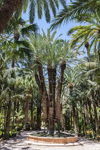 El Palmeral de Elche en época musulmana sería mucho más grande que los 300 000 ejemplares de palmeras datileras de la actualidad. Hay palmeras con 300 años de antigüedad, teniendo en cuenta que la palmera tarda unos 10 años en desarrollar un metro de tronco.