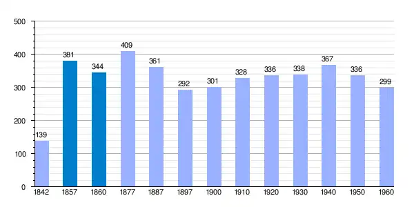 | Gráfica de evolución demográfica de Palomares[2] entre 1842 y 1960 |