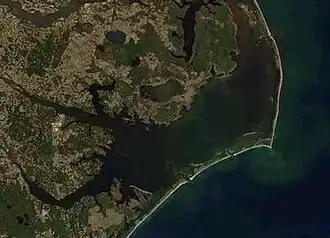 - Esta obra contiene una traducción derivada de «Pamlico Sound» de Wikipedia en inglés, publicada por sus editores bajo la Licencia de documentación libre de GNU y la Licencia Creative Commons Atribución-CompartirIgual 4.0 Internacional.