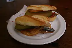 Uno de los usos más comunes del pan es servirse como puede ser en la elaboración de preparaciones en las que se incluyan otros alimentos entre dos rebanadas de pan. Así se consigue el popular sándwich, que se elabora con pan de molde incluyendo entre las rebanadas de pan diversos contenidos, generalmente cárnicos así como salsas (en forma de ensaladas). Este tipo de sándwiches puede ser servido frío o caliente (generalmente elaborado en una sandwichera). De la misma forma, en la cocina española se tienen variantes del emparedado con cortezas más duras como es el bocadillo en sus diferentes variantes (ejemplos son el bocadillo de calamares y el pepito de ternera) y que han llegado en la actualidad a una forma refinada de alta cocina en lo que se denomina: bocadillo de autor, en la cocina italiana se tiene un equivalente en el panini. Convertido, en algunas ocasiones, en parte de ciertas comidas rápidas se puede encontrar en las hamburguesas, los perritos calientes, los döner kebab, o los shawarma, entre otros. En otros casos aparece en diferentes pequeños almuerzos como pueda ser el ploughman's lunch inglés, en las tapas españolas, en los meze turcos, o el internacional coffee break. A veces se usa como untable como es el caso de las fondues (Mont-d'Or chaud), o en la ingesta de algunas sopas o salsas (como es el caso de la salsa de pan).