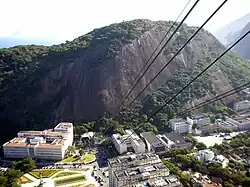 Este pico es uno de los más llamativos entre los varios morros monolíticos de granito que se elevan directamente del borde del mar en Río de Janeiro. Un teleférico de cristal artesonado (llamado bondinho en el portugués popular) con capacidad para 65 pasajeros, recorre una ruta de 1.401 metros que une Praia Vermelha con el Morro da Urca, y ésta con el Pan de Azúcar. Esta es una de las principales atracciones turísticas de la ciudad. Fue inaugurado (su primer tramo, entre Praia Vermelha y Morro da Urca) el 27 de octubre de 1912 y, desde entonces, ha transportado alrededor de 37 millones de personas, manteniendo un promedio actual de 2.650 visitantes por día. Su nombre proviene de la similitud del teleférico con los tranvías que circulaban en Río de Janeiro en el momento de su inauguración.