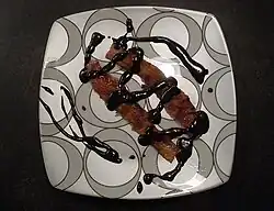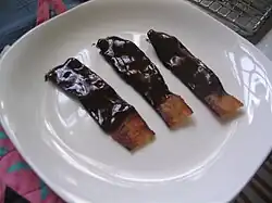 - ↑ a b Symon, Michael. «Chocolate Covered Bacon Recipe». Food Network. Consultado el 12 de febrero de 2009.