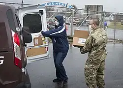 - ↑ Connecticut Military Department assists with COVID19 relief efforts. Publicado el 24 de marzo de 2020. Consultado el 21 de junio de 2020.