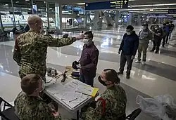 ![]() La Guardia Nacional de los Estados Unidos construye un hospital de campaña en McCormick Place en Chicago para pacientes COVID-19, 9 de abril de 2020. | ||