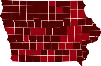 27 de abril: el gobernador Reynolds anunció que 77 condados eliminarán algunas restricciones comerciales el 1 de mayo, mientras que los condados de Polk, Dallas, Black Hawk, Linn, Louisa, Tama, Johnson, Bremer, Benton, Allamakee, Dubuque, Fayette, Marshall, Jasper, Iowa, Poweshiek, Scott, Washington, Muscatine, Henry, Des Moines y Woodbury mantendrán restricciones comerciales completas hasta el 15 de mayo porque se vieron muy afectados por las infecciones.[10][11]