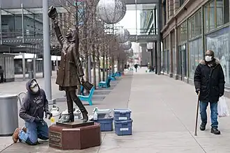 ![]() Transeúntes durante la inmovilización social en Saint Paul, 23 de marzo. | ||
