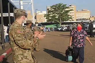![]() Guardia Nacional de los Estados Unidos aplauden a personal sanitario del Montgomery Veteran Affairs Medical Center en Jackson, 12 de mayo. | ||