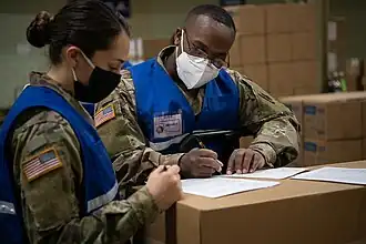![]() Guardia Nacional de los Estados Unidos empaca una muestra de saliva de un residente en un centro de atención médica en Tulsa para muestras de posibles COVID-19, 5 de mayo. | ||