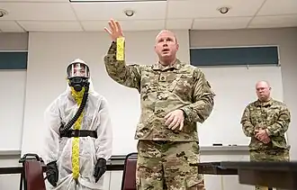 ![]() Los miembros de la Guardia Nacional de los Estados Unidos brindan capacitación sobre equipos de protección personal, 16 de marzo. | ||