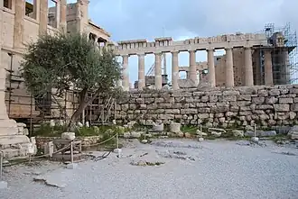 Albergaba una estatua de Zeus Herceo (protector de la tierra) y el mítico olivo ofrecido por Atenea a la ciudad de Atenas después de su victoria sobre Poseidón por el control del Ática. En 1917 se plantó el árbol actual.