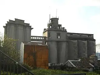Los silos, figura emblemática de la vista urbana del Vigo contemporáneo, pertenecen a dos etapas: una primera (terminada antes de 1931) formó 4 silos de sección circular rematados por un mirador; y una segunda (terminada antes de 1940) amplió con 6 más de sección ovalada. Ambos se construyeron en hormigón armado por encofrado, y están comunicados con el edificio principal por una pasarela y un túnel. El almacén de sacos también tienen una característica solución técnica: una cubierta inundable de hormigón armado, que junto a un sifón gigante, funcionaba como termorregulador para la mercancía.[8]