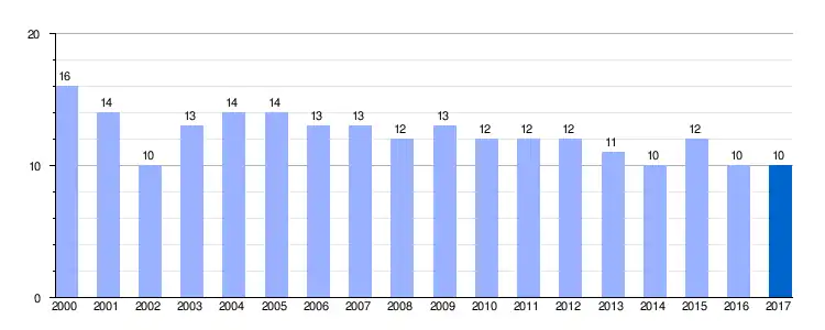 | Gráfica de evolución demográfica de Panizares entre 2000 y 2017 |